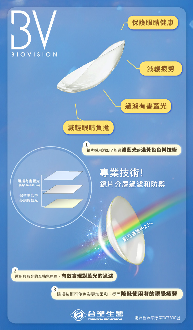 同時還能抵擋有害UV光線及藍光傷害,為您的眼睛提供全方位的保護。