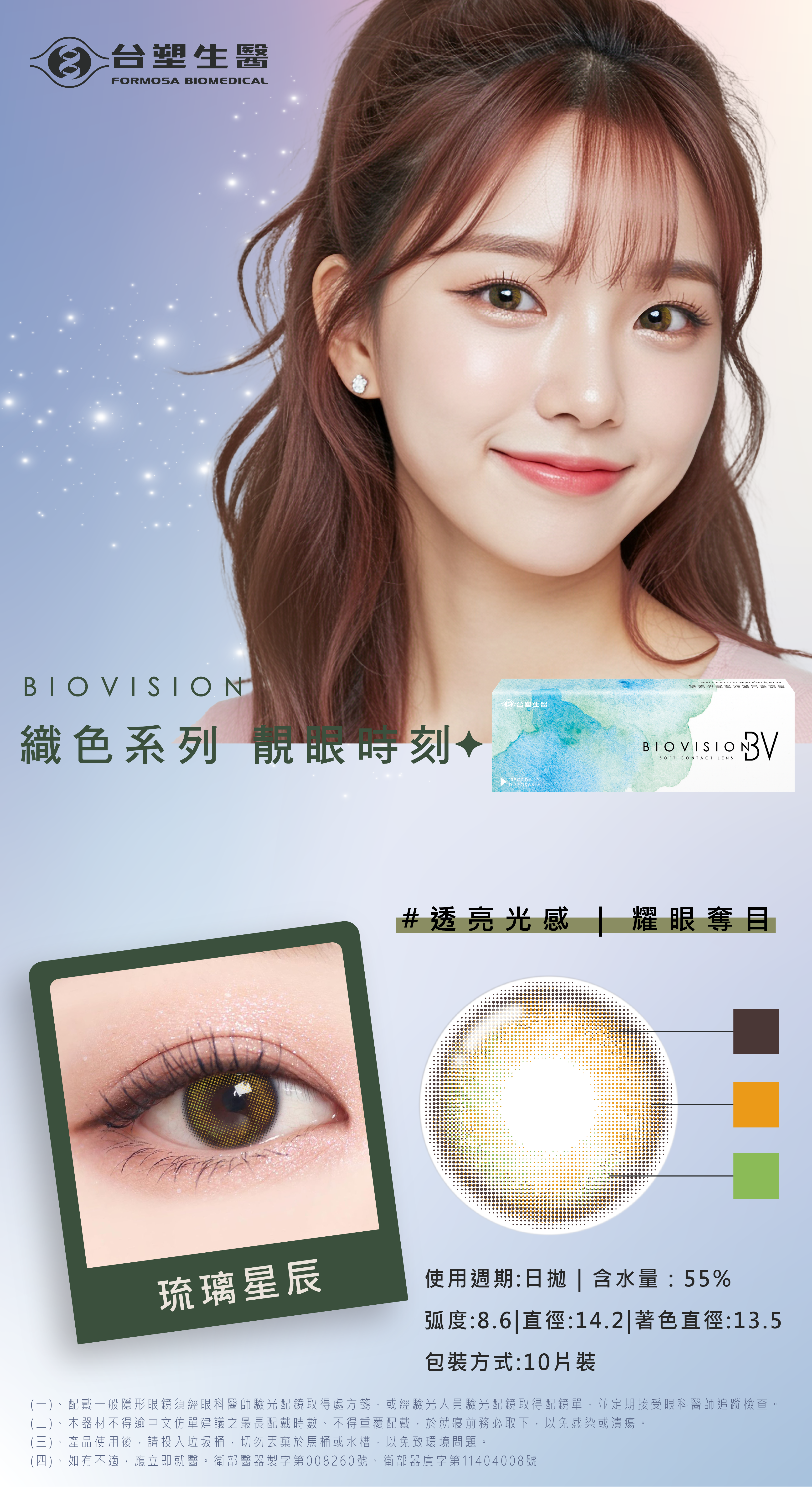 台塑生醫BIOVISION彩色日拋-琉璃星辰(10片裝/盒)