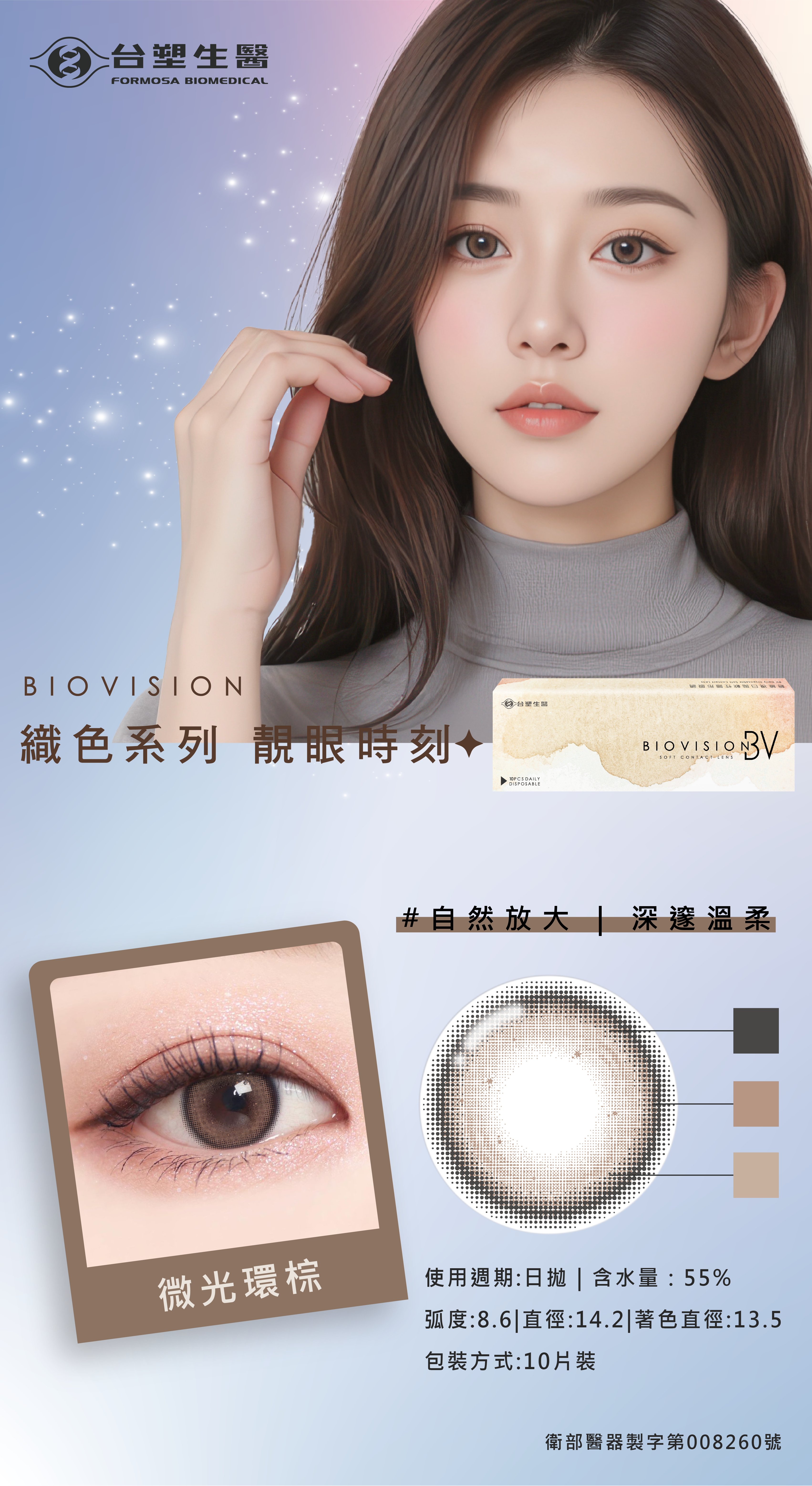 環繞瞳孔的微光棕色,如晨曦柔光灑落,溫暖柔和的光暈效果,低調卻能提升眼神深邃度!