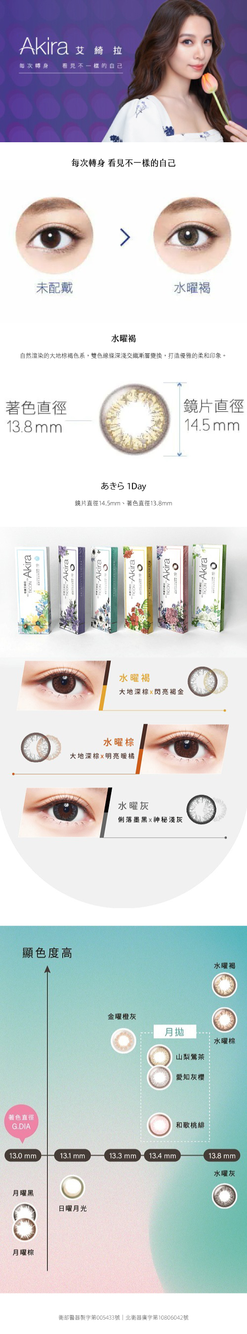 直徑:14.5mm | 著色直徑: 13.8mm | 弧度:8.7mm