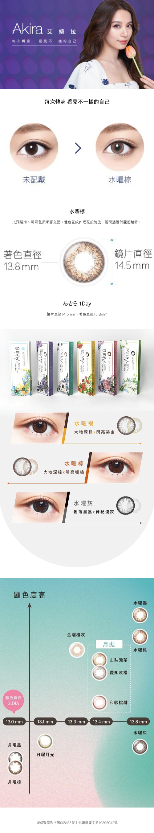 直徑:14.5mm | 著色直徑: 13.8mm | 弧度:8.7mm