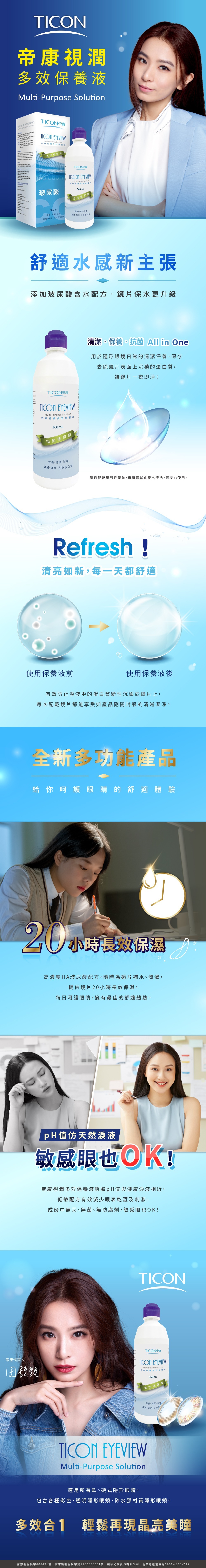 每日使用清亮如新更潤澤。添加HA玻尿酸含水配方,鏡片保濕度更升級↑